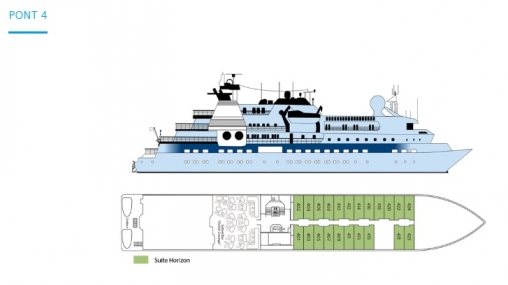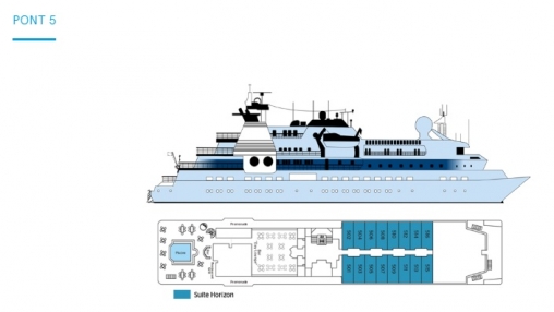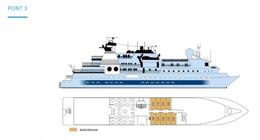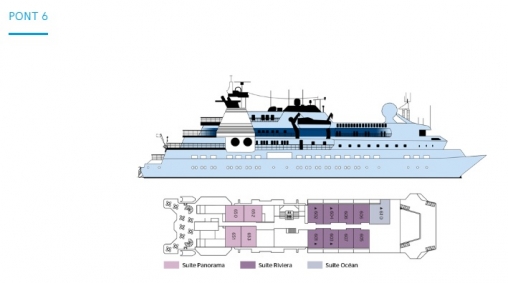1 Suite de 38 m² située à l'avant du pont 6 à babord.