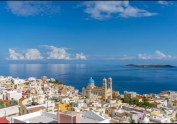 Syros est la capitale des Cyclades et un centre d'activités commerciales d'antan. Vous pouvez admirer les magnifiques villas construites par les banquiers, les marchands et les armateurs de l'île. Ermoupolis est une élégante petite ville aux rues pavées, ses deux collines jumelles, avec le côté orthodoxe et catholique et une magnifique place centrale qui mérite d'être visitée.