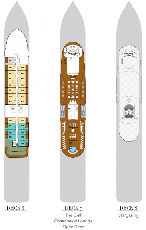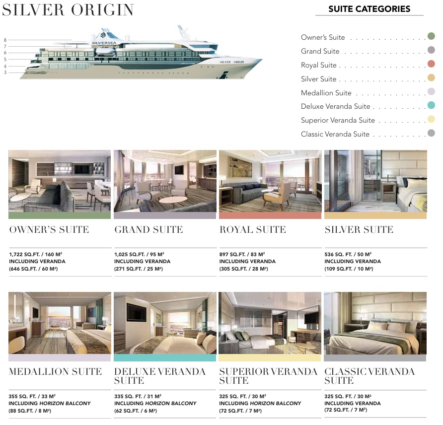 Les essentiels Pont(s): 5 Catégorie: Partie centrale Caractéristiques Véranda Coin salon Grand meuble-lavabo Douche séparée Dressing avec coffre-fort personnel Meubles Lit queen size Bureau d'écriture Coiffeuse Matelas luxueux sur mesure Médias et communication Wi-Fi standard illimité 1 grand téléviseur à écran plat avec médiathèque interactive Téléphone à ligne directe Chargeurs muraux pour appareils mobiles USB-C Prises double tension 110/220 Services à bord Service de majordome Vin mousseux à l'arrivée Équipements Machine à expresso Bouilloires Menu d'oreillers Réfrigérateur et bar approvisionnés selon vos préférences Peignoir Produits de toilette de luxe Parapluie Sèche-cheveux